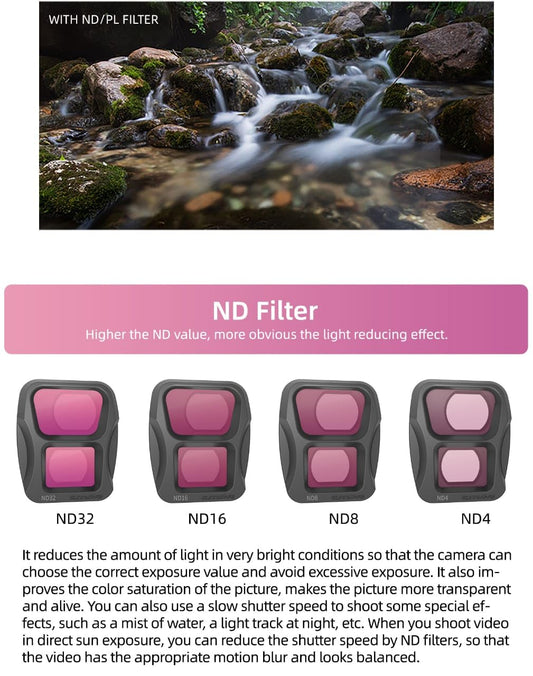 Sunnylife Nd Filters Set for DJI Mavic Air 3 ND4,ND8,ND16,ND32 HD Multi Coated German Optical Glass Filming Accessories (4 in 1 Set(ND))