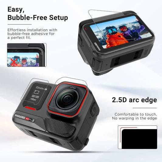 Tempered Glass Screen & Lens Protector for Insta360 Ace Pro 2 Accessories(3 Pcs Set)