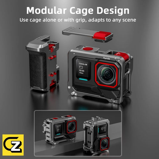 GetZget® Flymile Xplore Grip Kit Insta 360 Ace pro 1/ pro 2 Camera Metal Hand Grip with Lens Cap mounting Accessories