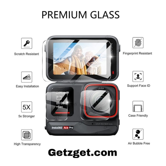 Tempered Glass For Insta360 Ace/ Ace Pro Camera Lens & Screen Protector Scratch Guard Accessories( 2 x Screen, 2 x Lens, 2 x Display Glass)