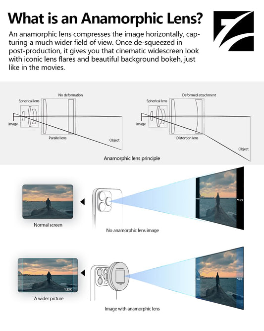 Freewell 1.33x Blue Anamorphic Lens For 17mm Mount iPhone, Samsung - Premium Smartphone Lens for Wide Cinematic Shots