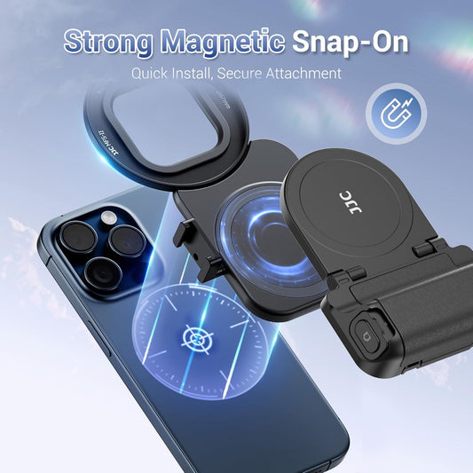 JJC Magnetic Phone Camera Grip Handle with Wireless Shutter Remote, Magsafe Camera Handle Bluetooth Bracket for iPhone Android Smartphone with 1/4†Tripod Screw for Video Photo Shooting (Black)