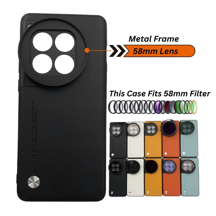 Phone Case for Oneplus 13 Support 58mm Lens ND Filter Attachable Metal Slot Including Lens Protective Cap (Black)