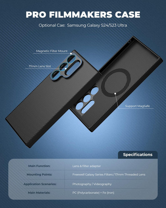 FREEWELL Pro Filmmaker Case for Samsung S24 Ultra - Magnetic Filters & 17mm Lens Slot Black