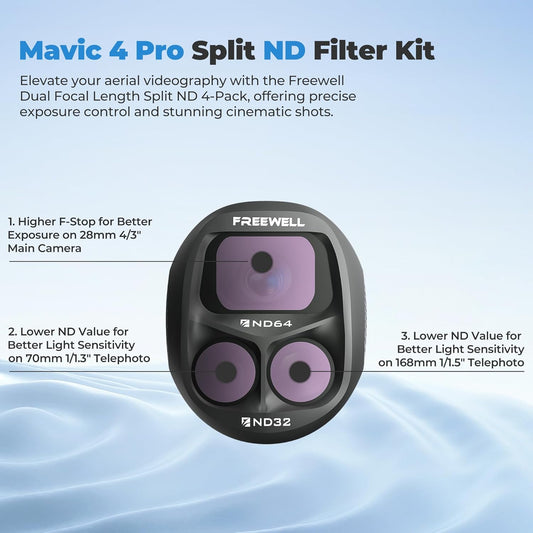 Freewell Split ND Filters 4-Pack for DJI Mavic 4 Pro – Split ND8/4, ND16/8, ND32/16, ND64/32 – Reduce Exposure for Cinematic Aerial Footage