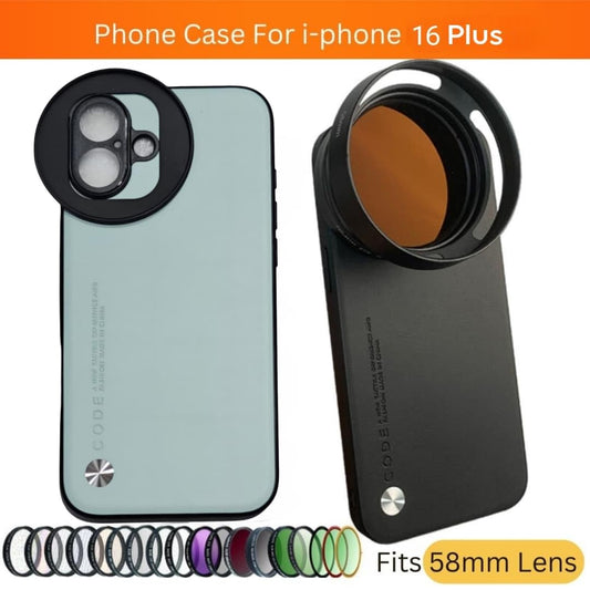 Phone Case For iPhone 16 Attachable Aluminum Slot Support 58mm Lens Nd Filter Mobile Cover (Phone Case )Accessories (Black)