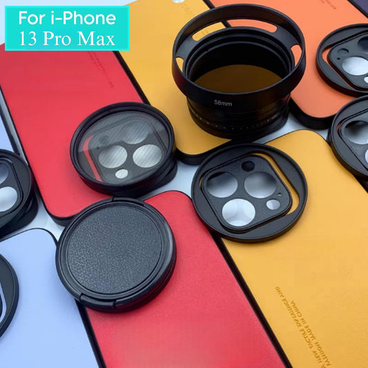 Phone Case For iPhone 13 Pro Max Attachable Aluminum Slot Support 58mm Lens Nd Filter Mobile Cover Accessories (Black)