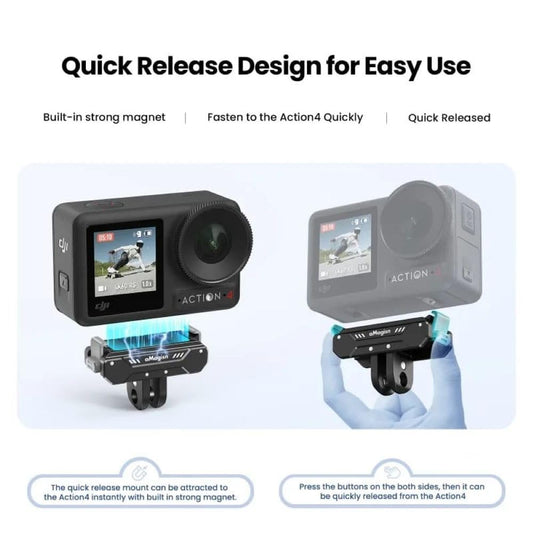 Amagisn Magnetic Quick Release Mount for Osmo Action 4 and 3 - Premium Aluminum Alloy Construction Bracket