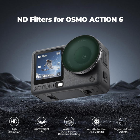 Freewell ND8/PL, ND16/PL, ND32/PL, ND64/PL Polarized Filter Set for DJl Osmo Action 6 - Essential for Daylight Filming & Enhanced Clarity