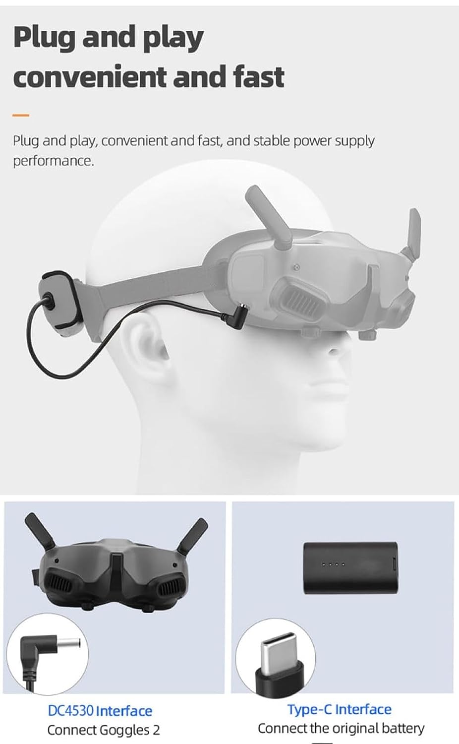 - Packing list :1pc power cable, 1pc back clip NOTE: Goggles Not Included