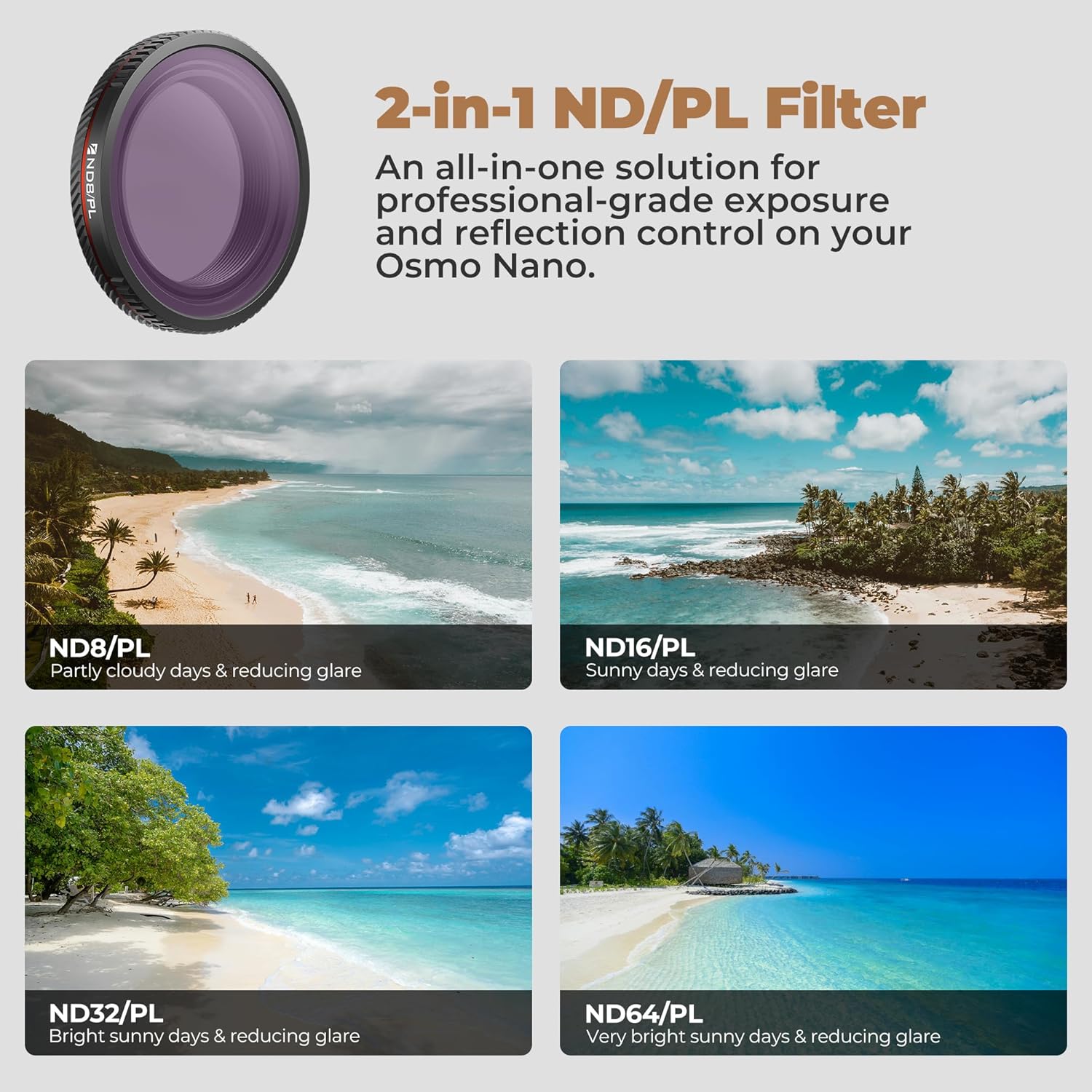 Freewell Bright Day Filter Kit for DJI Osmo Nano – ND8/PL, ND16/PL, ND32/PL & ND64/PL Filters