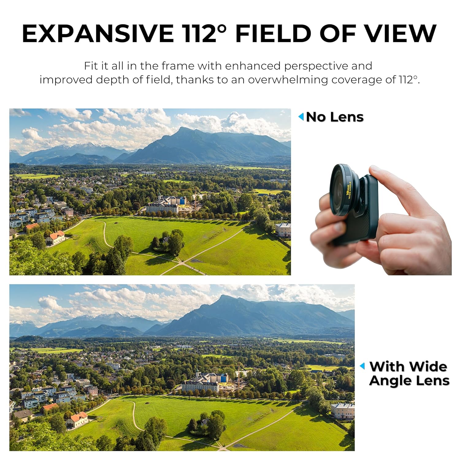 - Expansive 112° Field of View: Capture breathtaking landscapes, architecture, and group shots with enhanced depth and clarity.